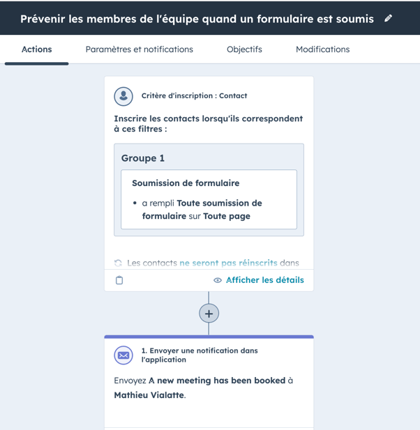 Automatisation simplifiée : La fonctionnalité des workflows simplifiés de HubSpot est essentielle pour une gestion des leads efficace et sans effort. Imaginez ceci : dès qu'un prospect interagit avec votre contenu, comme télécharger un guide ou s'inscrire à un webinar, HubSpot déclenche automatiquement une série d'actions (après programmation de votre part, évidemment). Cela peut être l'envoi d'un email de suivi personnalisé, la suggestion de contenus additionnels, ou même l'alerte à votre équipe de vente pour une prise de contact (par mail, par slack). L'avantage ici est double. D'abord, vous assurez une interaction continue et pertinente avec vos prospects, sans avoir à gérer chaque étape manuellement. Cela crée une expérience utilisateur fluide et personnalisée, augmentant les chances de conversion, finalement on revient ici à notre raison n°1 d’utiliser Hubspot. Ensuite, cela représente une économie de temps considérable pour votre équipe. Au lieu de suivre chaque prospect individuellement, HubSpot le fait pour vous, permettant à votre équipe de se concentrer sur des tâches à plus haute valeur ajoutée. En somme, les workflows simplifiés de HubSpot ne se contentent pas d'automatiser le suivi ; ils transforment vos leads en opportunités concrètes tout en optimisant vos ressources.