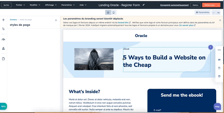 Pages d'atterrissage et formulaires captivants : faire bonne impression dès le premier clic est essentiel. Avec HubSpot, vous avez le pouvoir de créer cette impression mémorable. Commencez par intégrer vos propres modules de templates, puis passez à la conception de pages d'atterrissage (LP) sur mesure, parfaitement adaptées aux besoins spécifiques de votre audience. C'est une flexibilité créative à son apogée, rendue étonnamment simple par HubSpot. En combinant design séduisant et personnalisation poussée, vos pages et formulaires vont au-delà du visuel : ils établissent un dialogue direct avec vos prospects. Et les chiffres parlent d'eux-mêmes : une augmentation de 33% des ventes conclues grâce à cette approche ciblée. Cela signifie que chaque page que vous créez avec HubSpot n'est pas juste une vitrine, mais un véritable outil stratégique pour capturer des leads qualifiés et booster vos résultats
