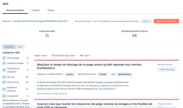 Suivi des Performances : HubSpot permet de suivre l'efficacité de votre contenu en termes de SEO. Vous pouvez voir comment vos pages se classent pour des mots-clés spécifiques, combien de trafic elles génèrent, et comment elles convertissent les visiteurs en leads.