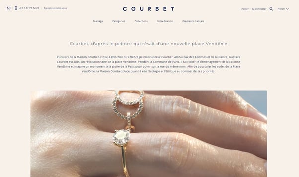 La joaillerie Courbet, présente sur la place Vendôme s’est lancée sur le digital avec un site en accord avec ses codes du luxe.