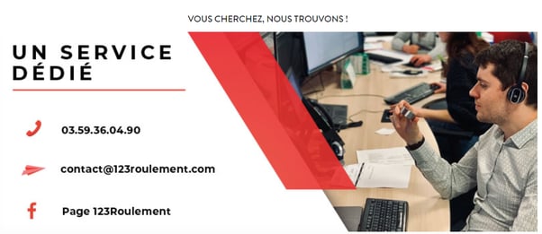 Ci dessous, le site 123roulement.com qui met avant la disponibilité de n’importe quelle référence via l’accroche : vous cherchez, nous trouvons.