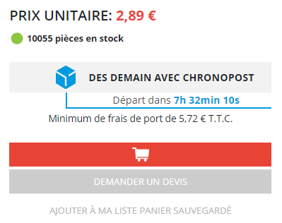 Petit plus qui porte souvent ses fruits : n’hésitez pas à mettre en avant les avis clients sur la fiche produit. Ils peuvent faire la différence lors de l’acte d’achat. Vous pouvez également ajouter directement les délais de livraison si ces derniers sont courts ; comme dans l’exemple ci-dessous.
