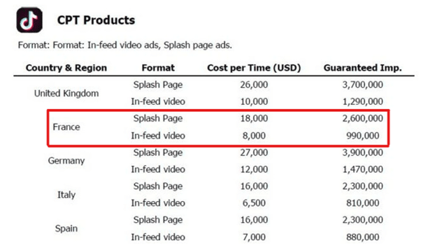 Il faut savoir qu’il y a encore peu d’annonceurs positionnés sur cette application donc les prix sont encore un peu élevés. En effet, pour les formats in-feed vidéo et Splash Page, cela vous coûtera 8$ pour 1 000 impressions. Vous aurez alors un inventaire beaucoup plus intéressant pour être diffusé.