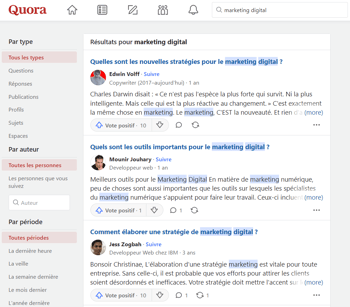 Il existe de nombreuses méthodes pour identifier des questions pertinentes des internautes, mais vous pouvez par exemple consulter des sites web tels que Reddit où encore Quora. Twitter est aussi un excellent outil pour identifier ce que les gens disent en temps réel. Il vous suffit d’écrire votre mot clé dans la zone de recherche, pour visualiser les sujets associés.